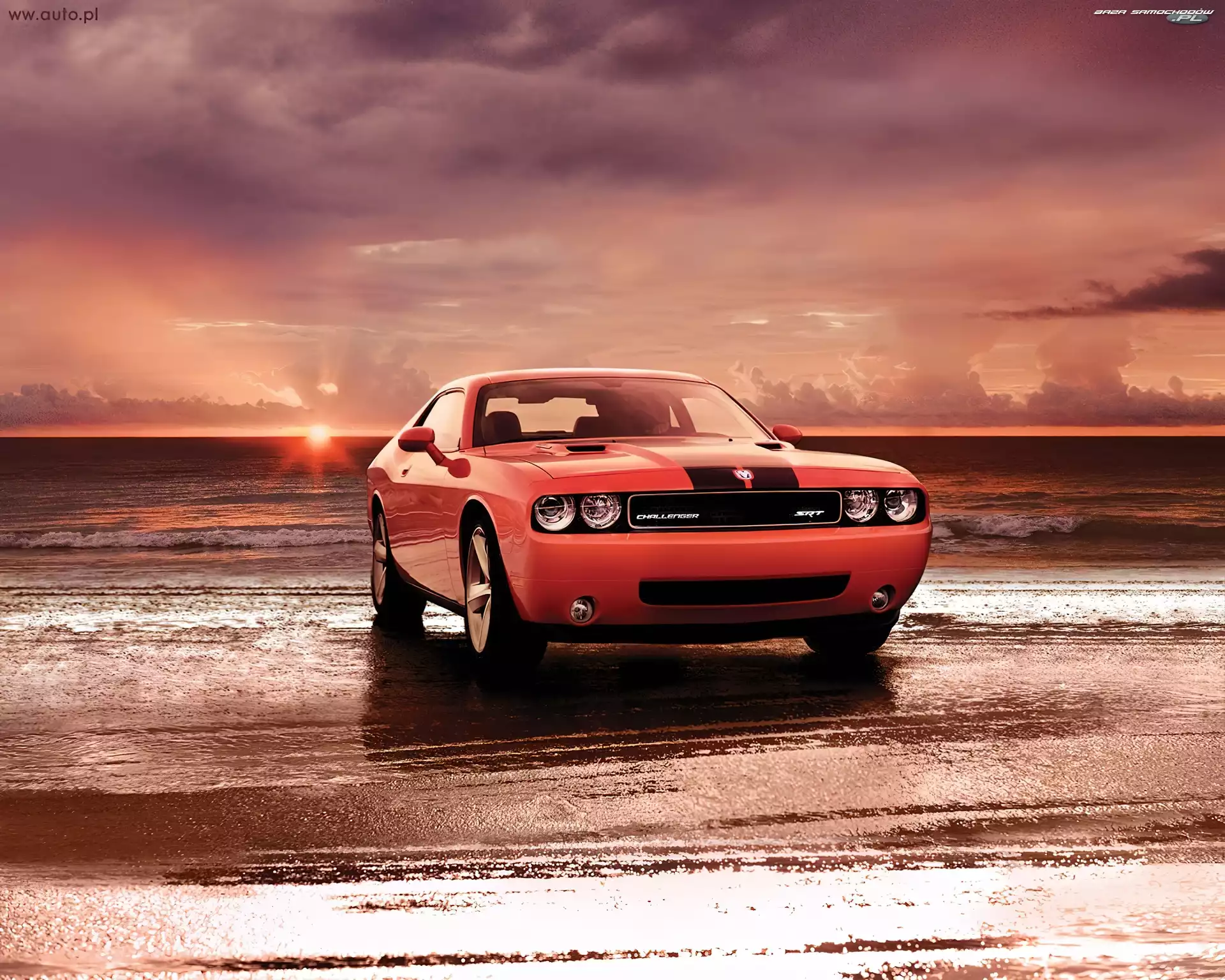 Morze, Dodge Challenger, Plaża- Zdjęcia samochodów